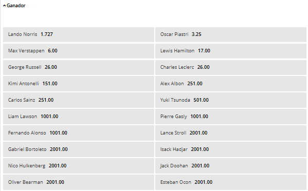 ¡El comienzo de la Fórmula 1 ha llegado y no podían faltar en las mejores apuestas deportivas de la semana. Mientras llega ese momento tenemos la buena noticia de que en nuestra sección de apuestas deportivas ya cuentas con el mercado a largo plazo para esta temporada de F1 2025.