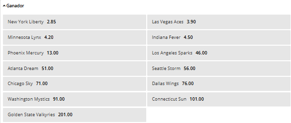 - Phoenix Mercury vs Minnesota Lynx | Mañana, 2:00 | 1: 6.50* 2: 1.125*